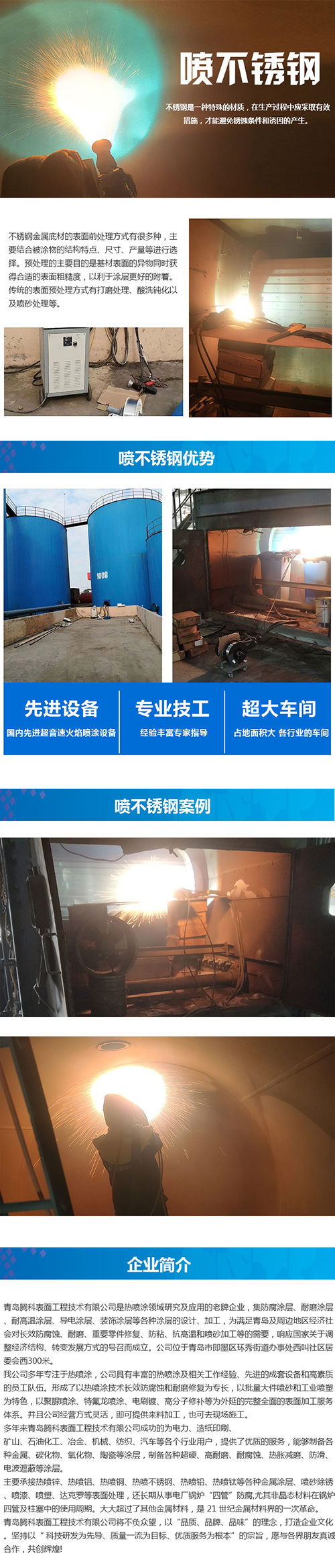 青島騰科表面工程技術(shù)有限公司 m.yangxinnews.com 歡迎您的光臨! 了解更多信息,請(qǐng)百度一下:騰科熱噴涂、騰科熱噴鋅、騰科熱噴鋁、騰科噴砂、騰科電弧噴涂、騰科水冷壁噴涂 |